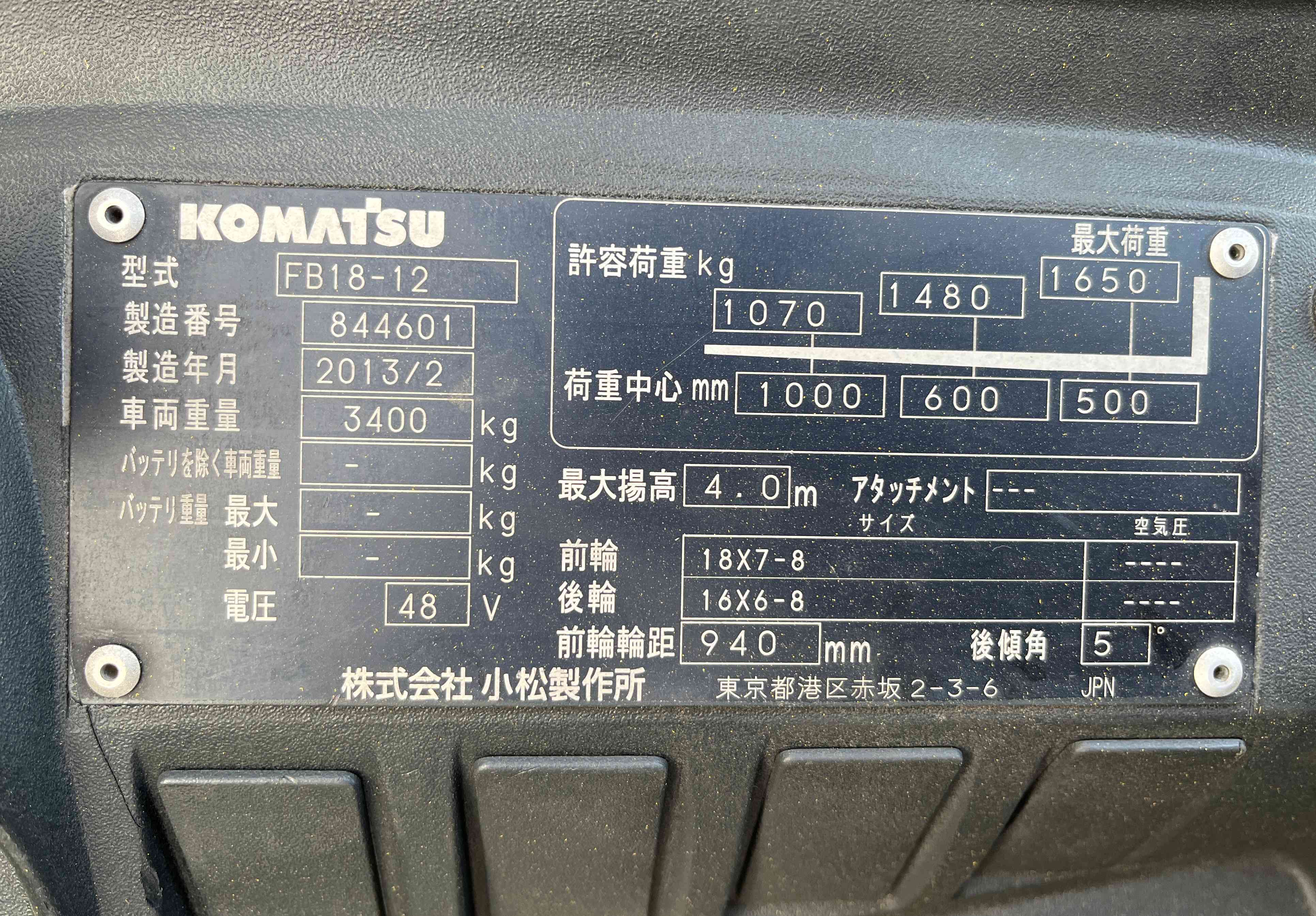 XE NÂNG ĐIỆN NGỒI LÁI KOMATSU 1.8 Tấn (2013)