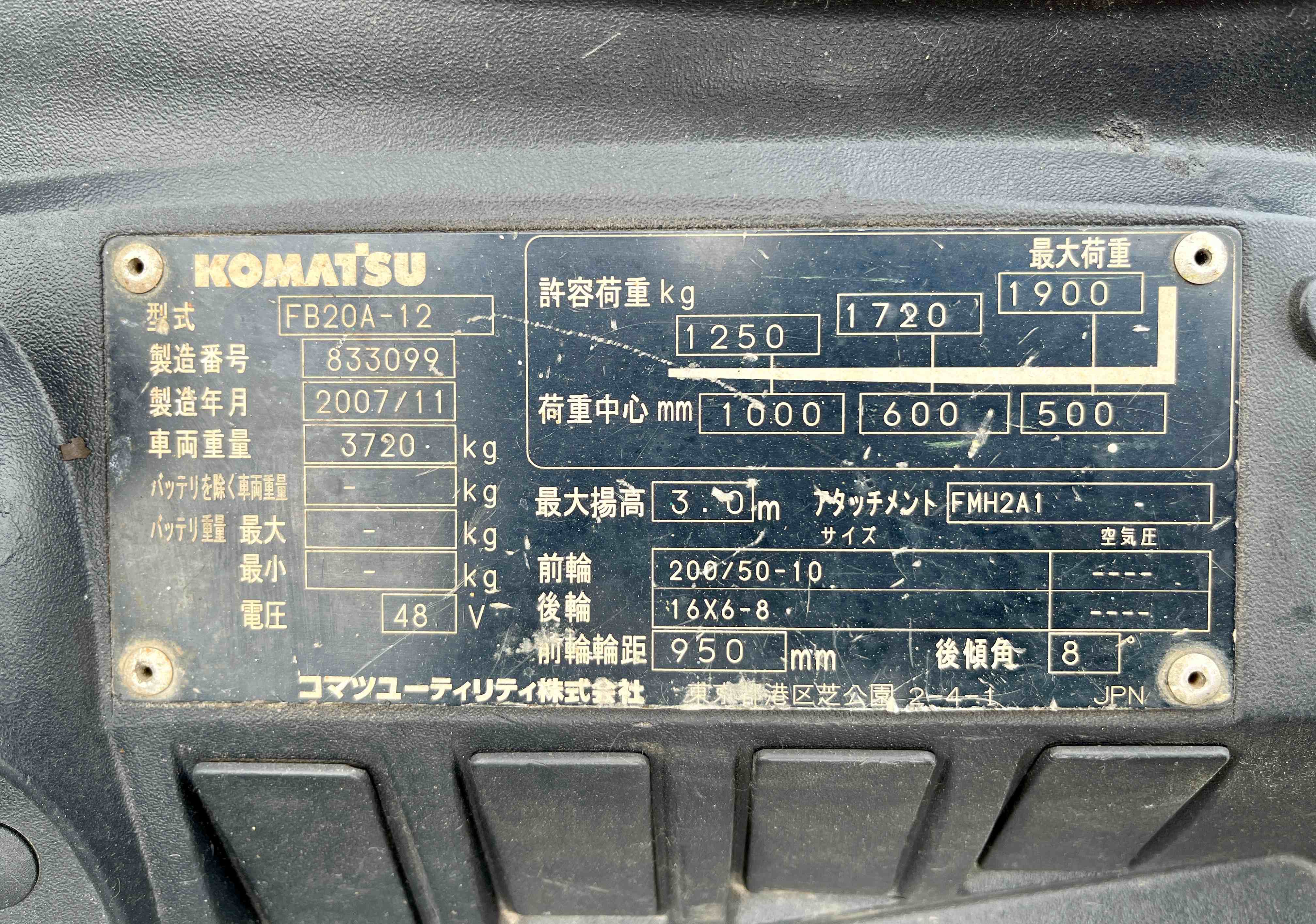 XE NÂNG ĐIỆN NGỒI LÁI KOMATSU 2 Tấn (2007)